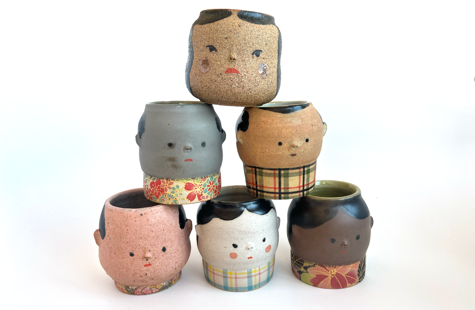 1) I tried to make some example couple cups for you to see, but it looks like they aren't coming out of the kiln in time, so you will have to sort of imagine it. They will be like this, but a bit bigger in size (more like the cup at the top of the pyramid in the photo above).